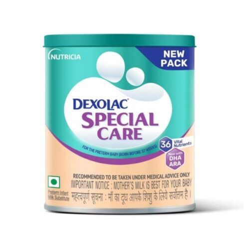 Dexolac Special Care Infant Formula is specially designed to meet the unique nutritional needs of premature babies born before 37 weeks. This advanced formula provides higher energy, protein, and essential nutrients to support healthy weight gain and overall growth in preterm infants. Enriched with vital vitamins and minerals, Dexolac Special Care helps support brain development, bone strength, and immune function during the early stages of life. The formulation is easy to digest and gentle on delicate tummies, making it suitable for premature infants who require specialized nutritional care. Dexolac Special Care should be used under medical supervision as part of a balanced feeding plan. Choose Dexolac Special Care from Cureka for trusted, high-quality nutrition tailored to support your baby’s early growth journey.